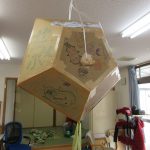 鬼は、後ろの大きな六角形のくす玉を守っている様子。 😀