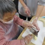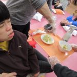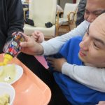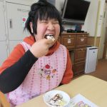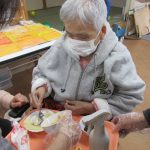 利用者さん好みにカスタマイズした後、仕上げはカラフルなチョコスプレーで映えるバレンタインクレープの出来上がり。 😉