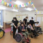 各グループ代表1名のご家族様にも参加していただき、巨大パズルを利用者様、職員のアシストで完成させました。 😀