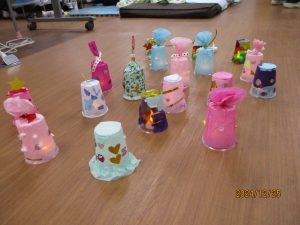 飾り付けたり、キャンドルライト(電池で光るもの)を