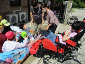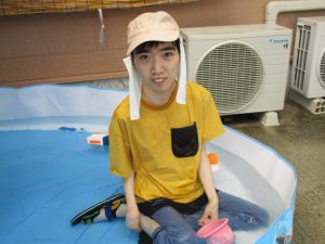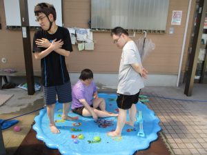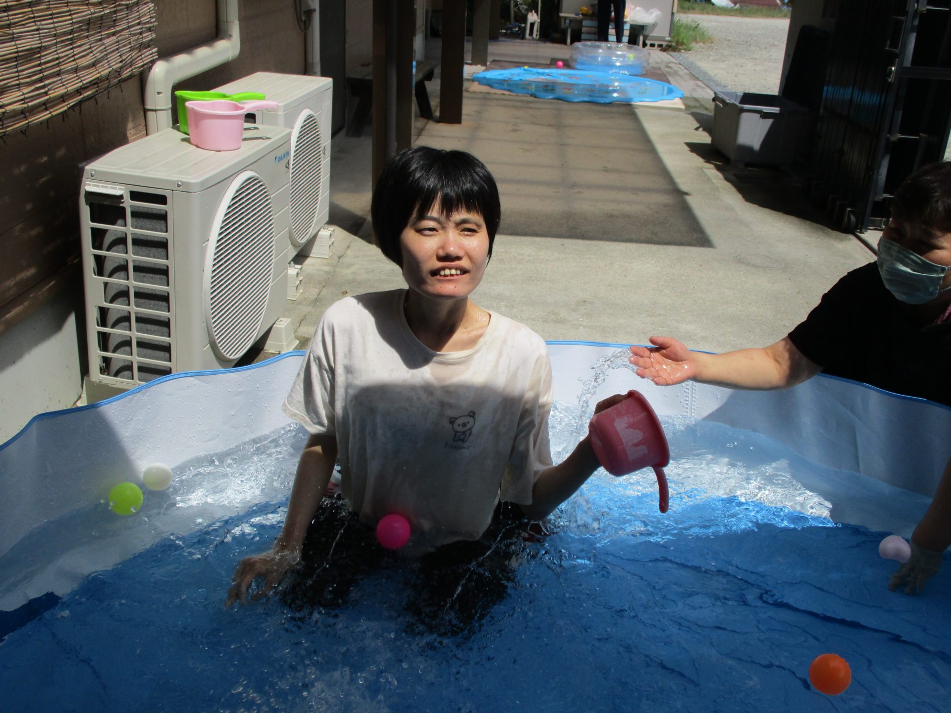 プールに入りながら水風船を投げ合ったり、水鉄砲を撃ち合ったり、