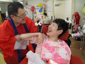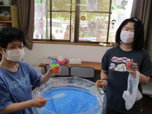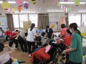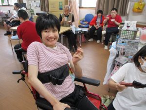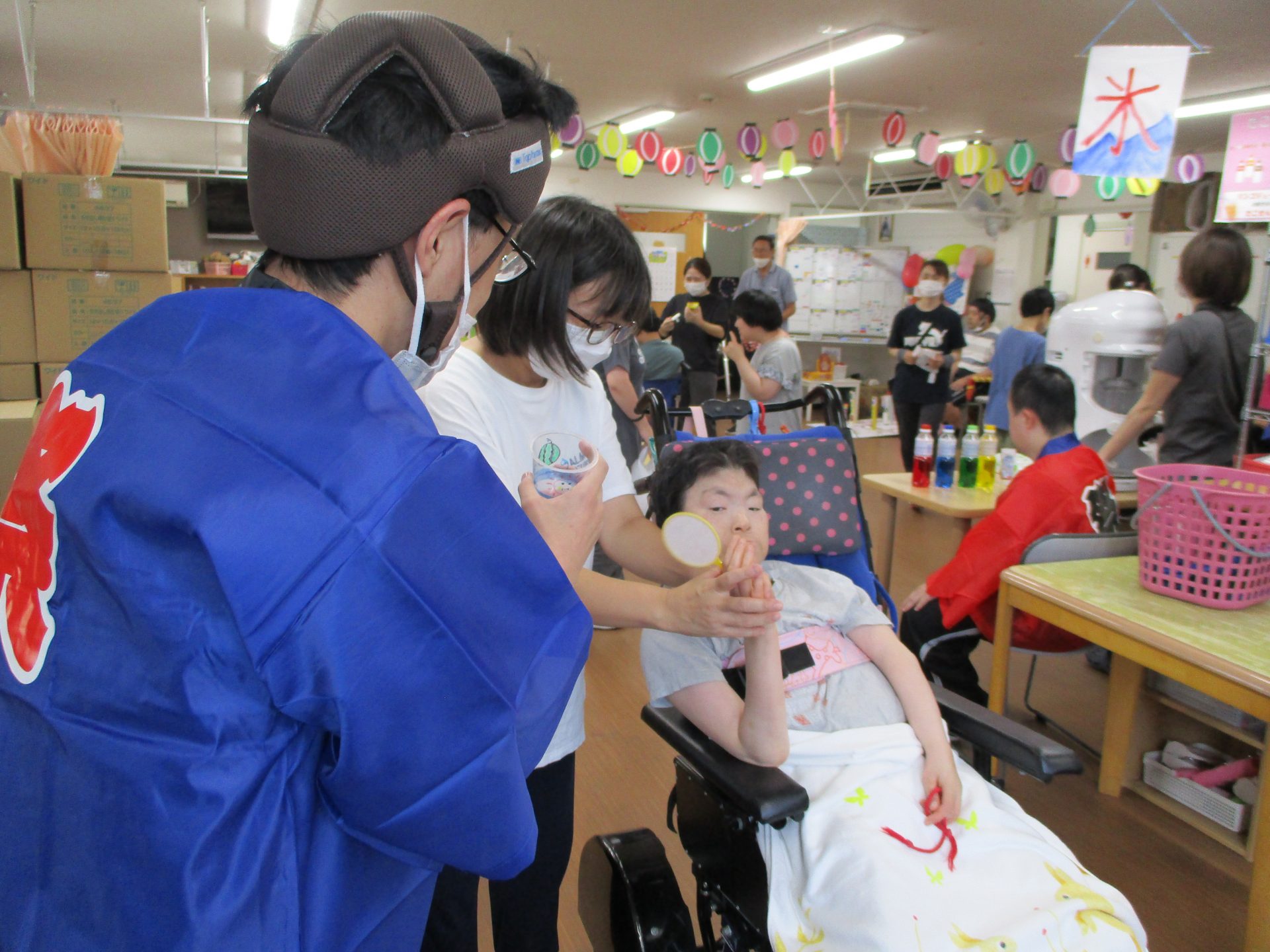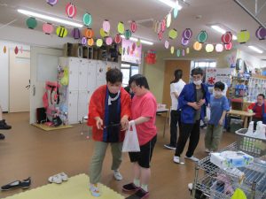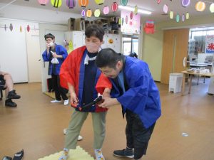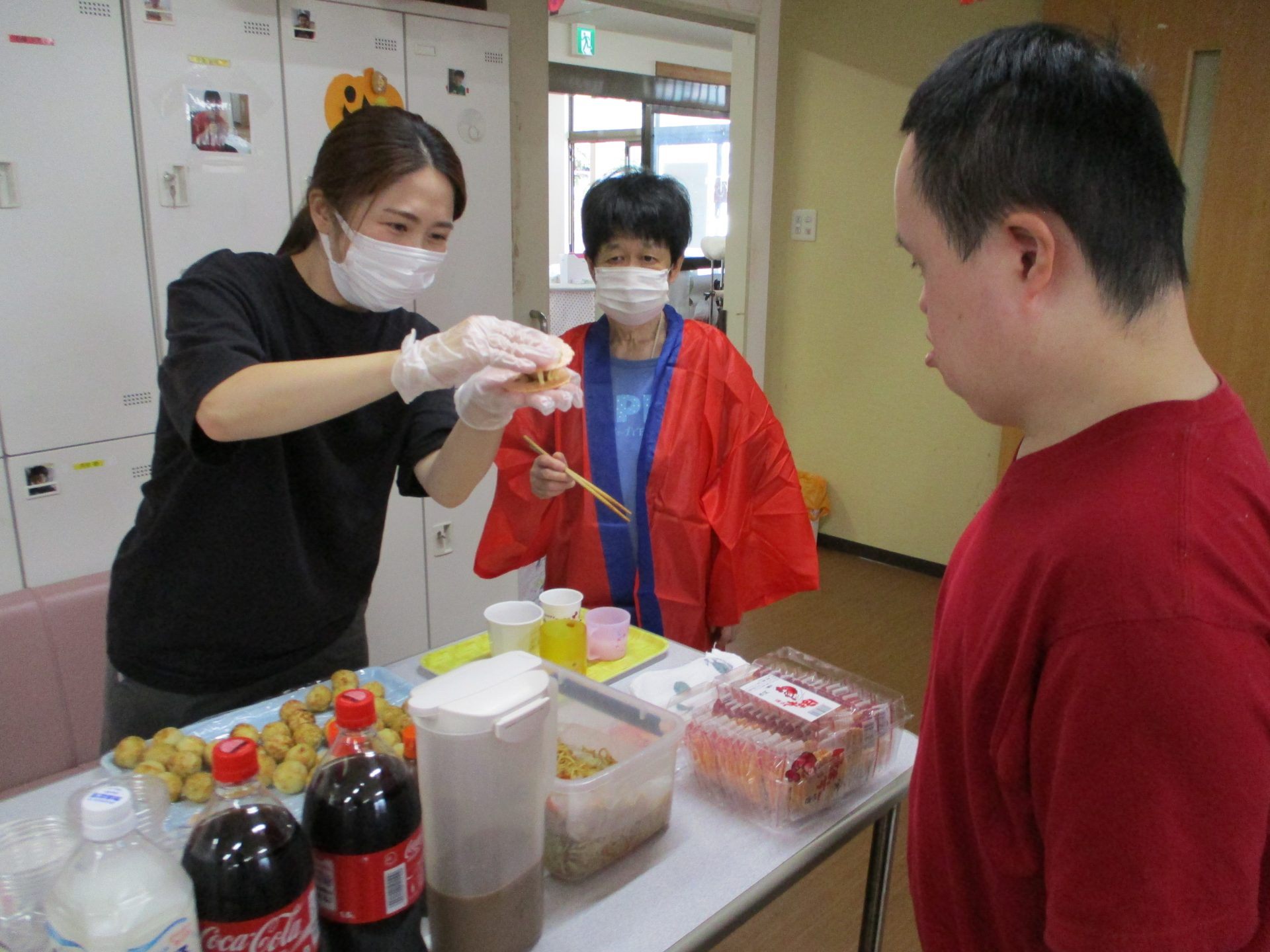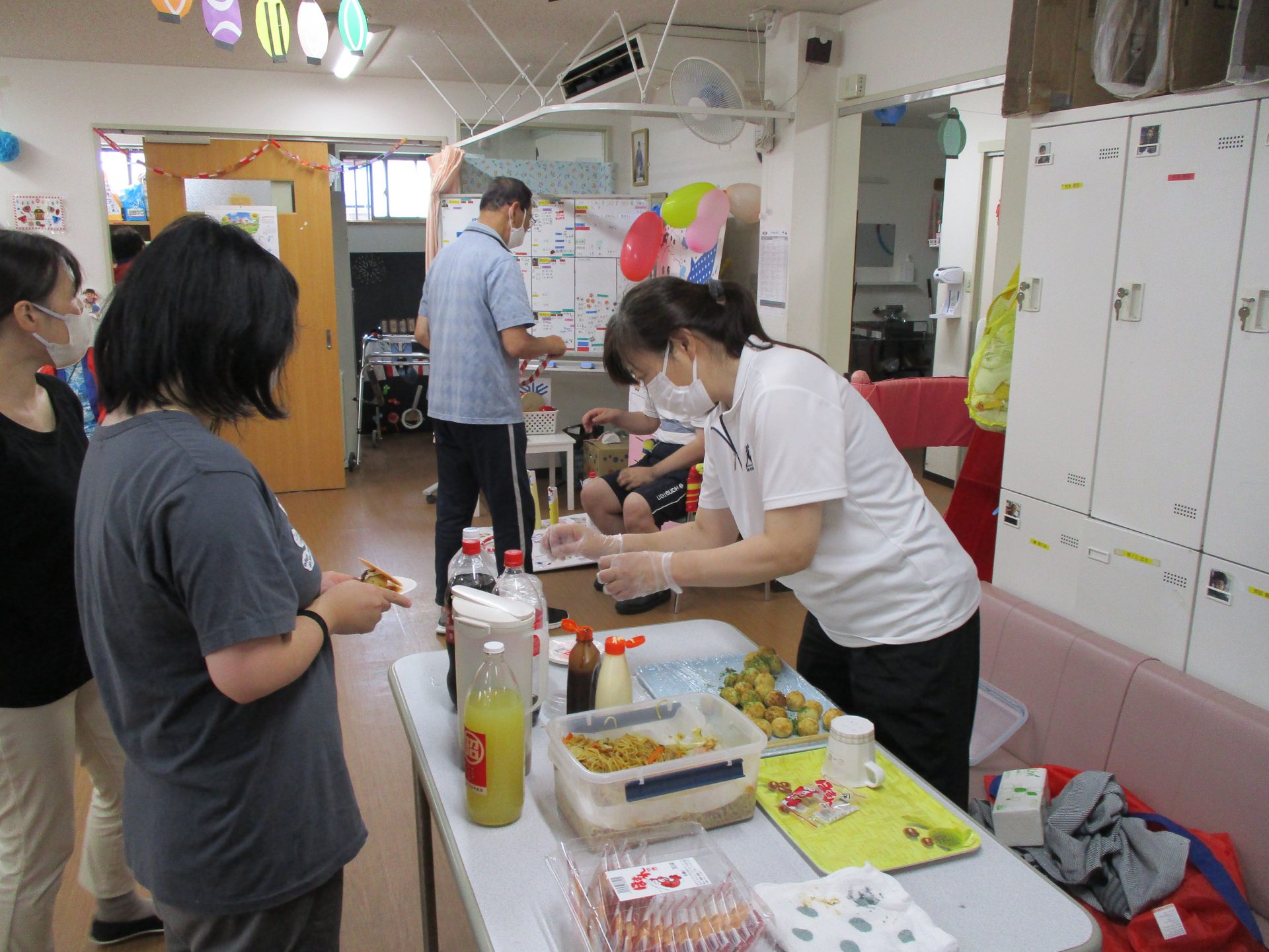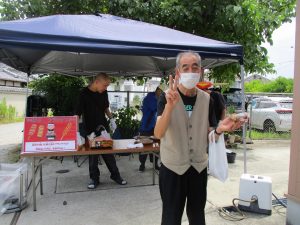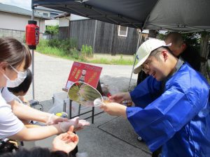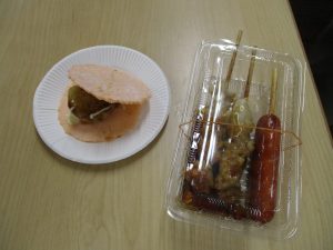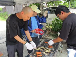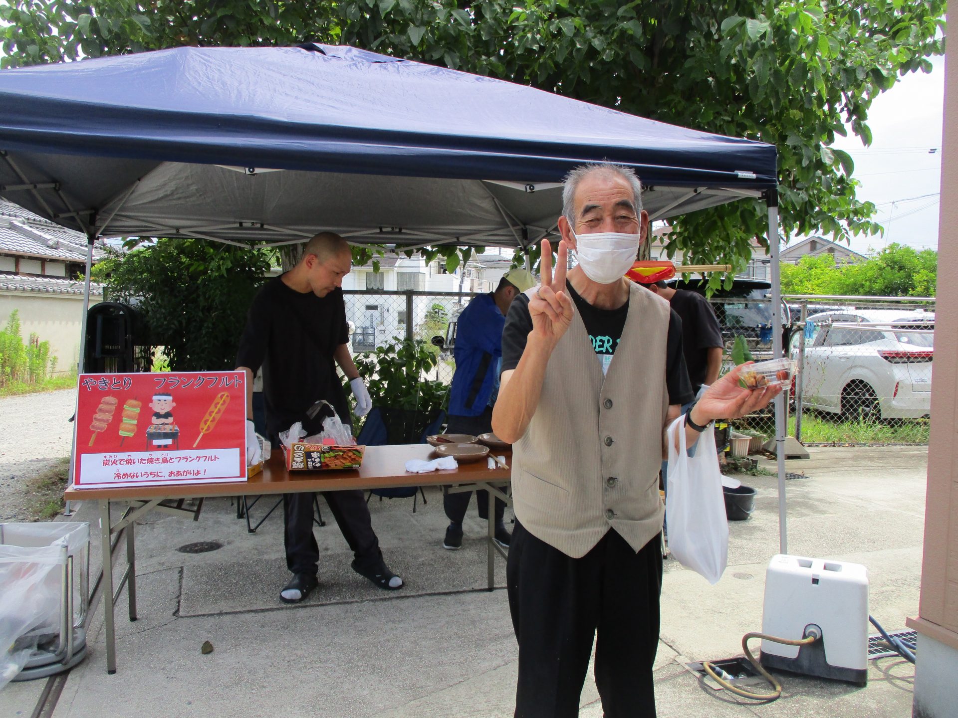 暑い中、外で焼き鳥&フランクフルトのお店番を