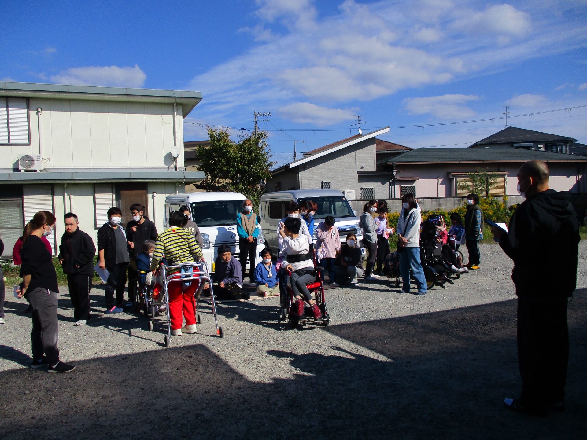 職員の声掛けから訓練がスタートです。