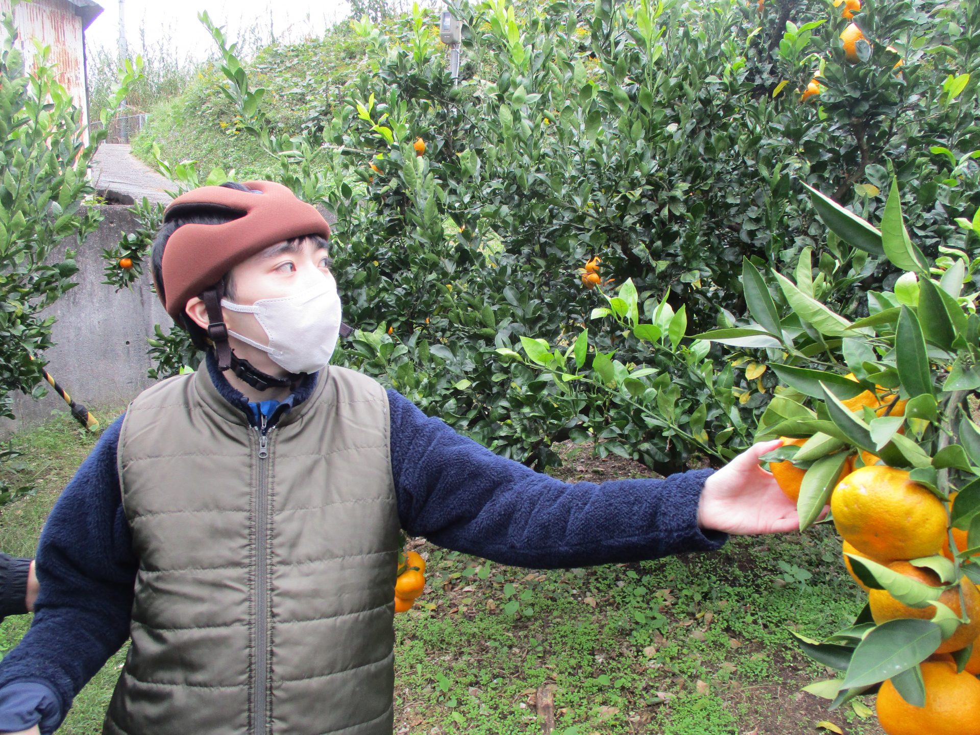 車椅子の方もみかん狩りでき、また3種類のみかんの木があり、