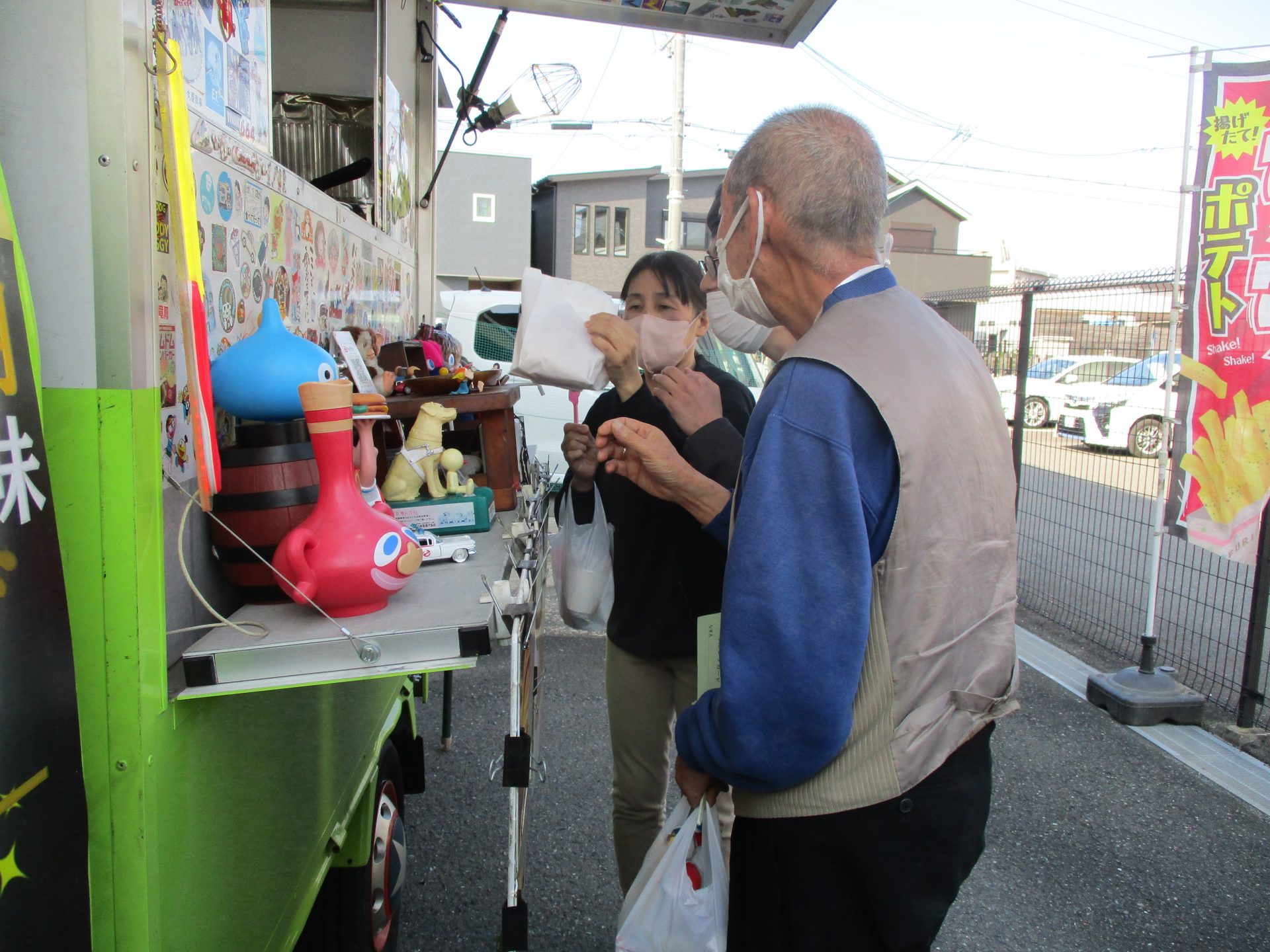 キッチンカーでは、ポテトとからあげのセットやソフトクリームを