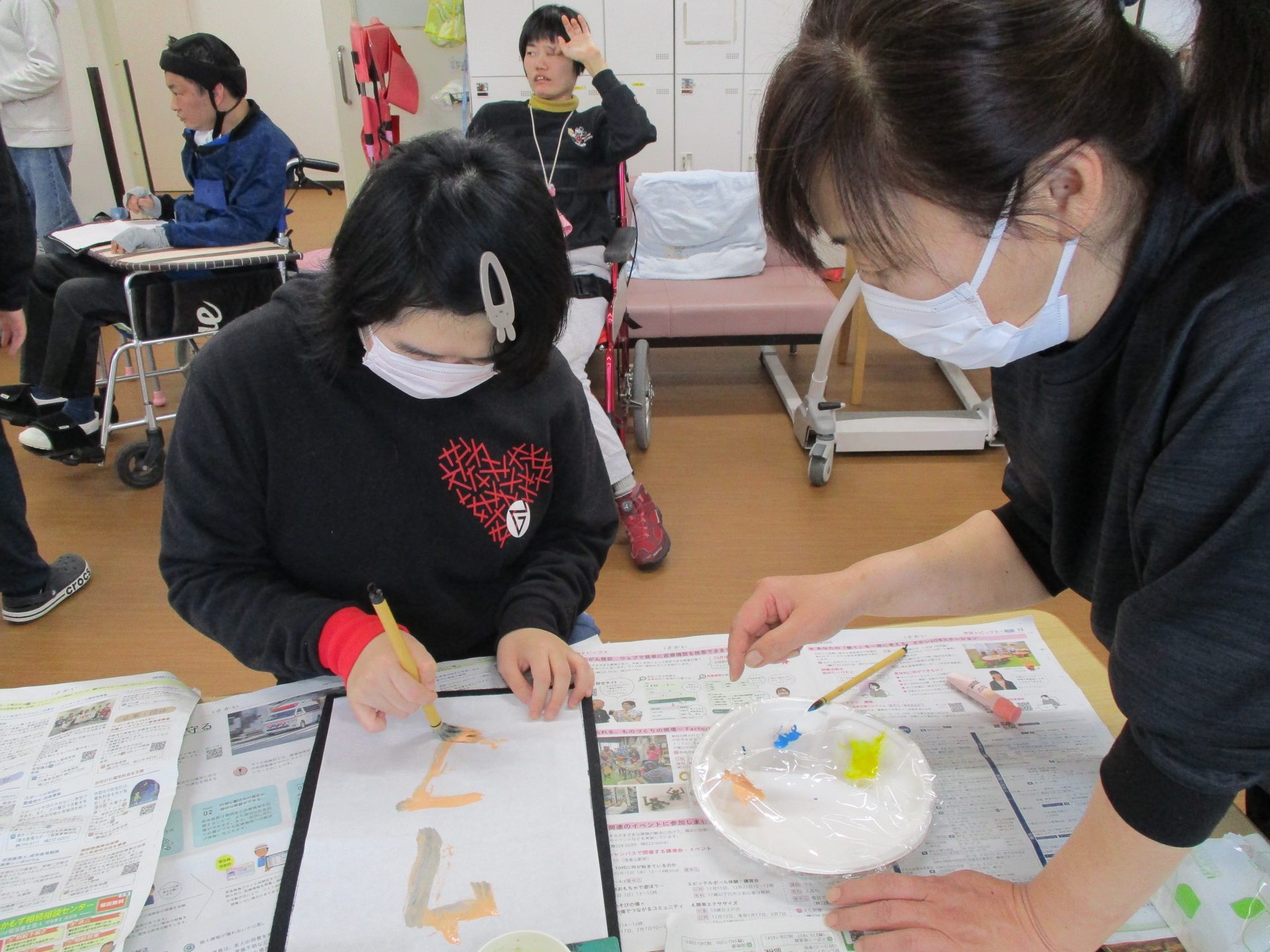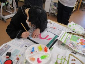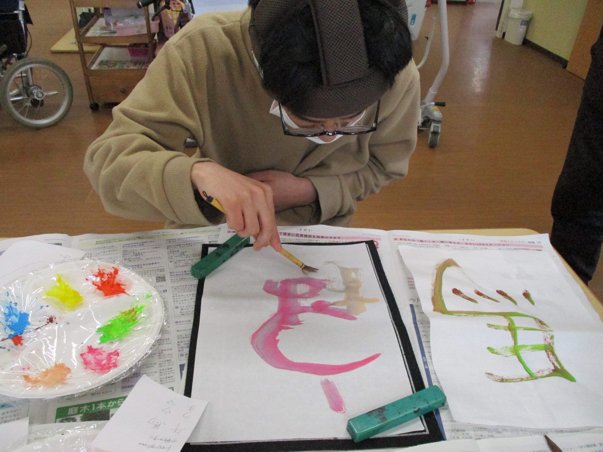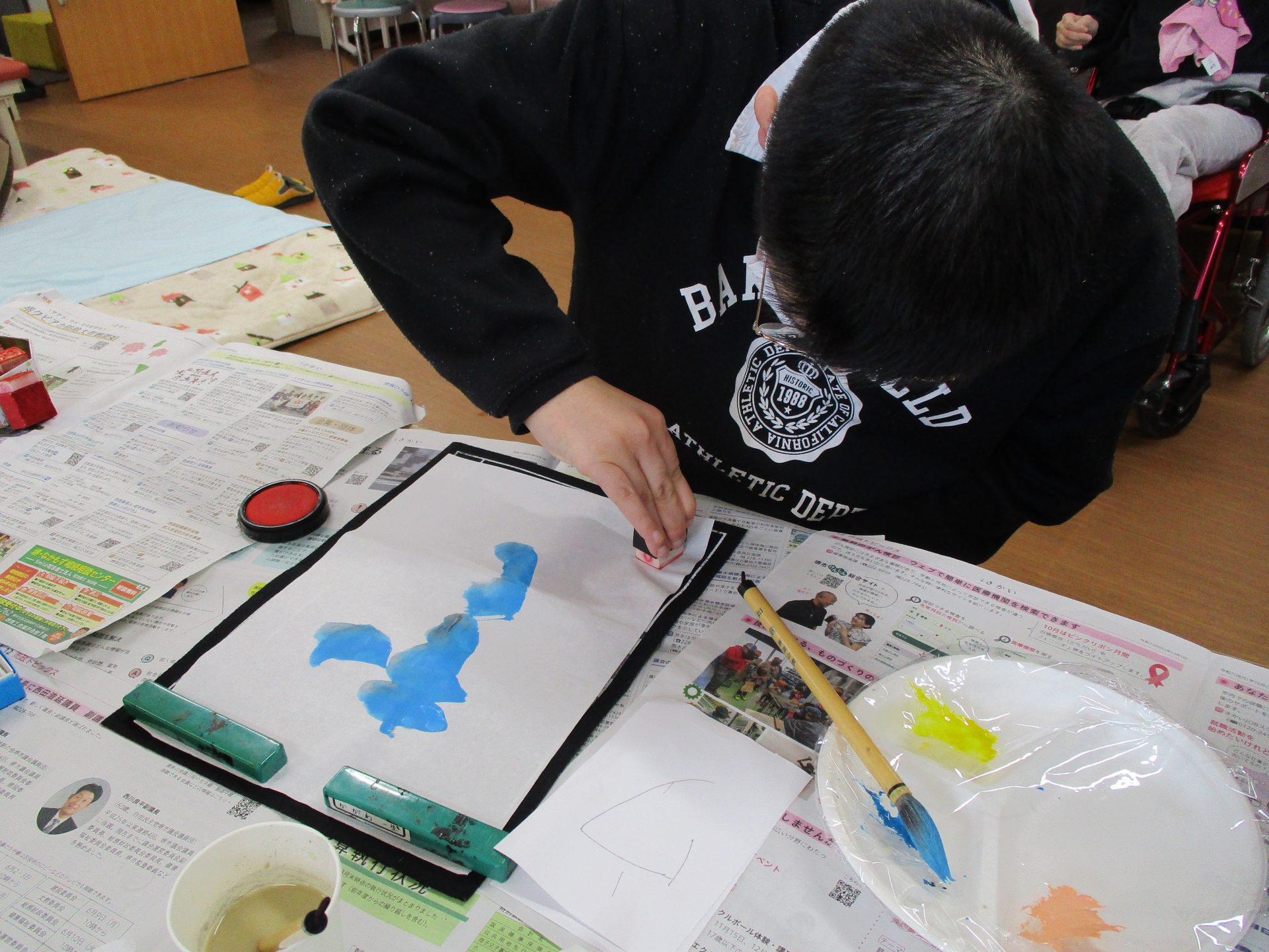 みなさん、それぞれ好きな色の絵具を選ばれ、