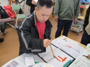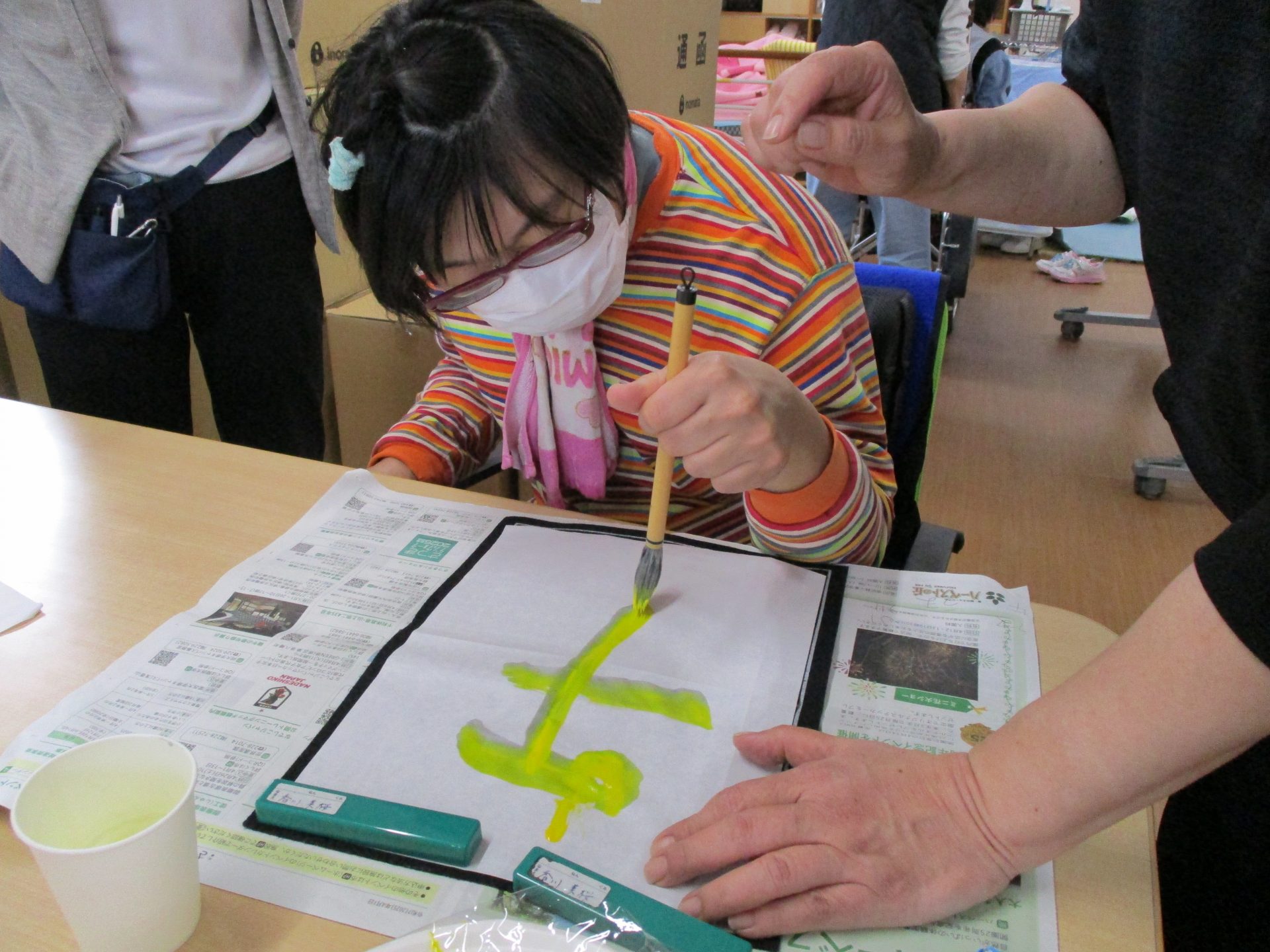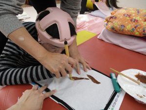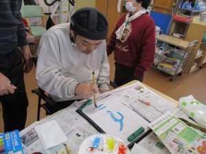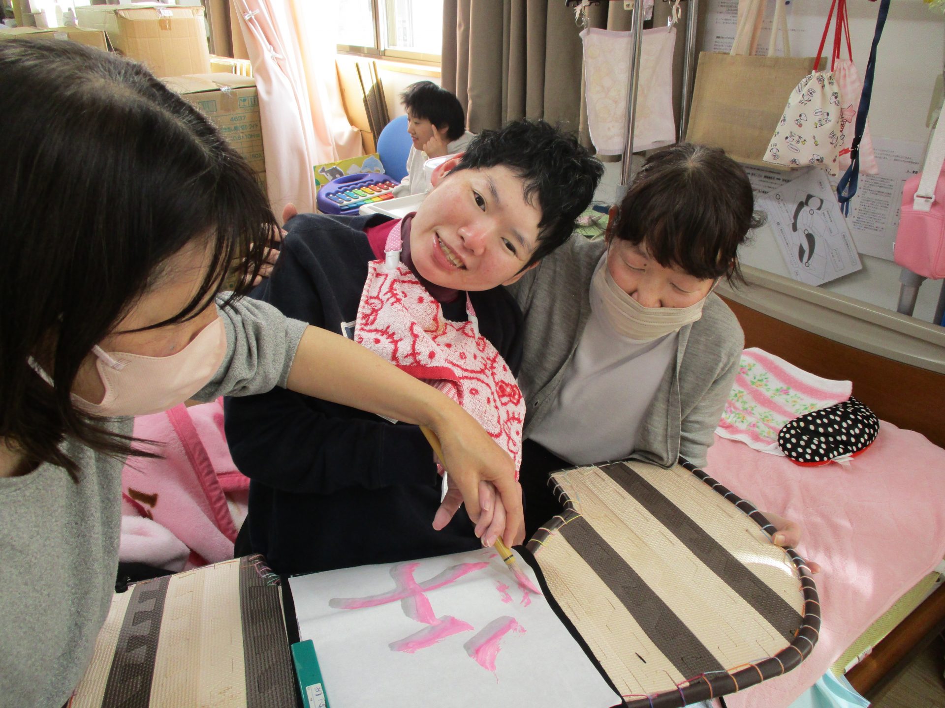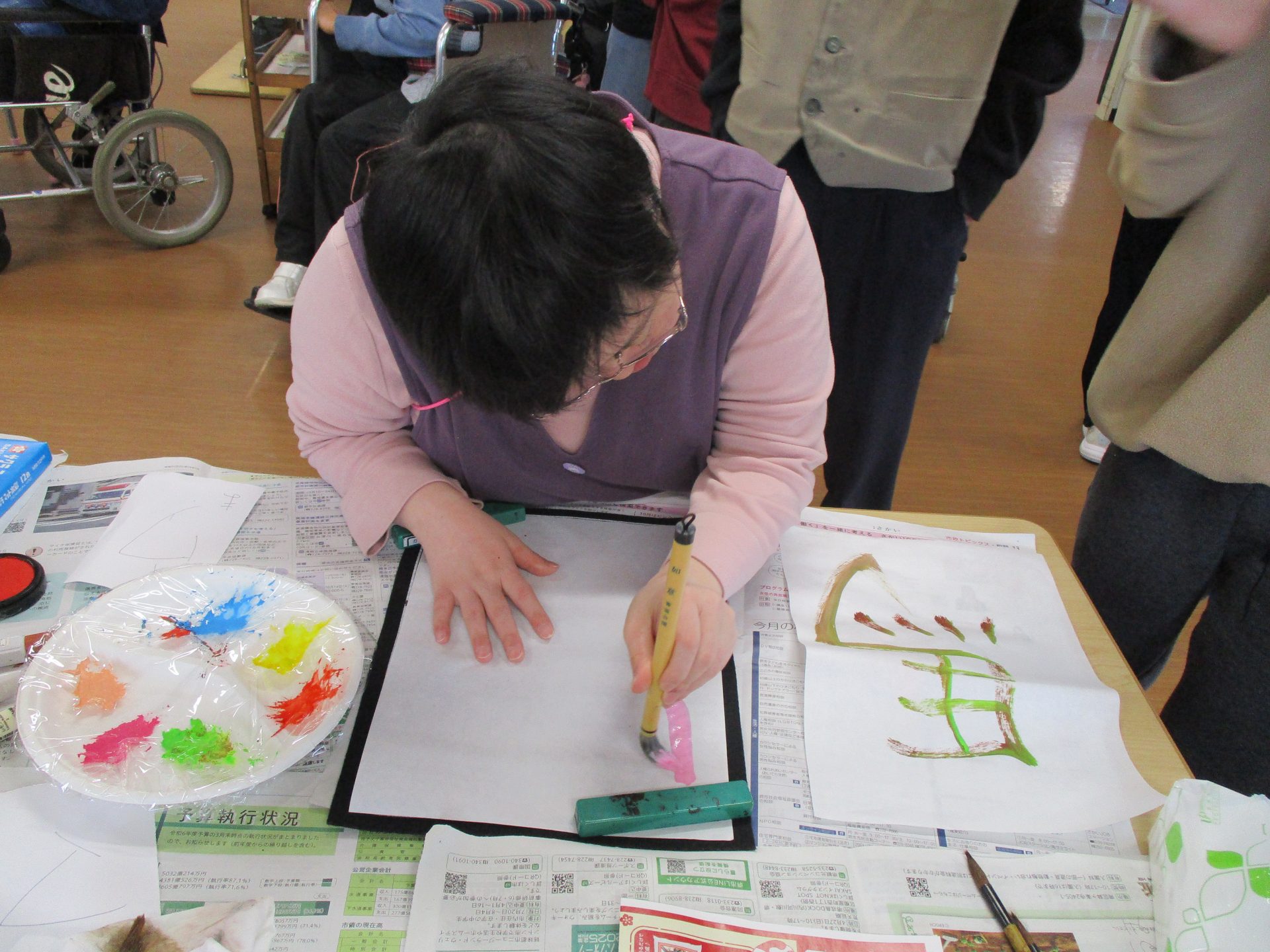 みなさん、それぞれ好きな色の絵具を選ばれ、