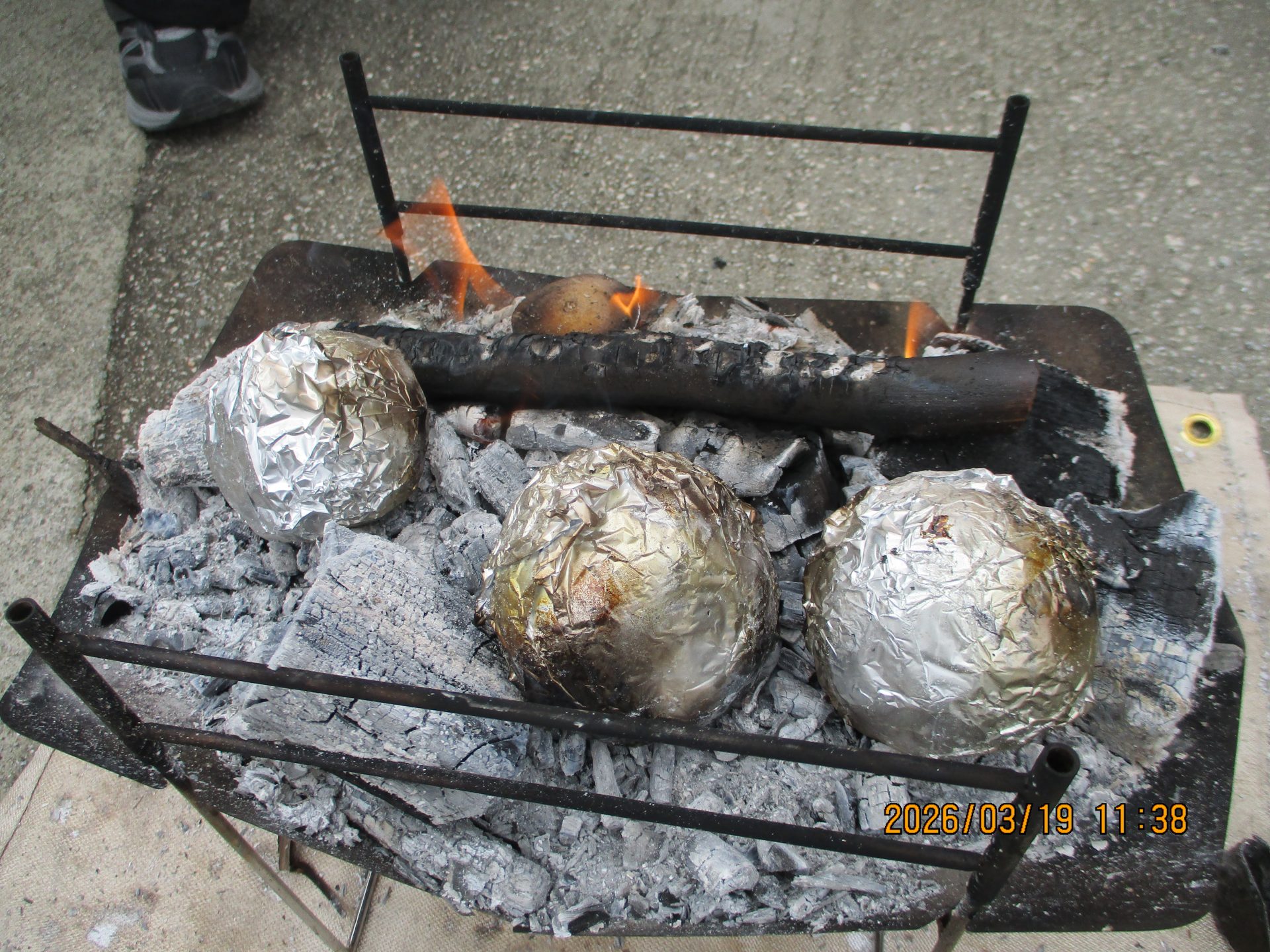 屋外ではバーベキューコンロと焚火台でお肉やホイル焼きを…🍖