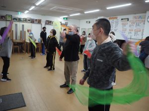 初回ではありますが、「ダンスしよう!身体動かそう!」ということで曲に合わせてダンスやストレッチをして汗を流しました。