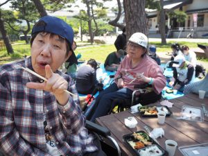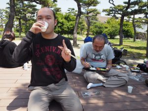 二の丸広場でお弁当タイム、皆さん嬉しそうに食べられていました。