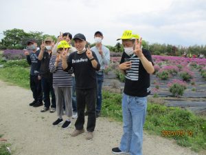 薔薇やラベンダーをバックに集合写真を撮りました!