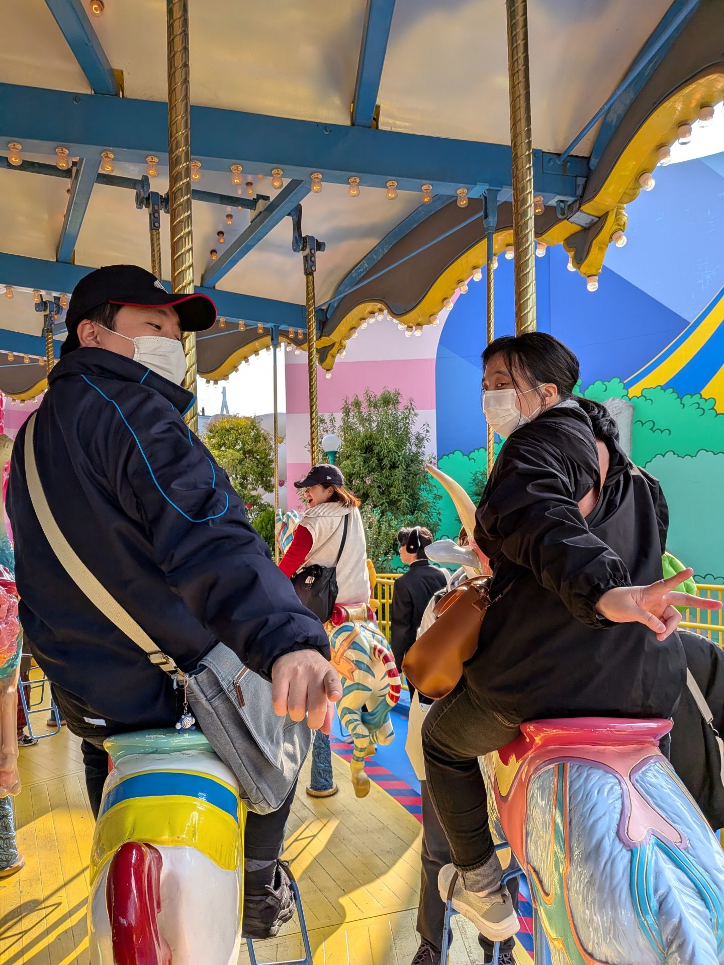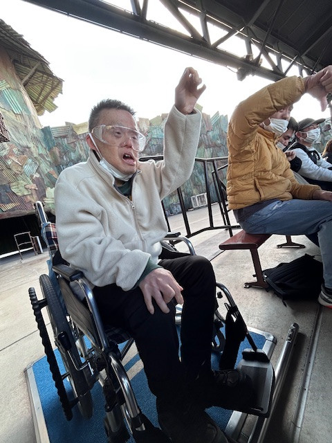 奥にあるエルモのゴーゴースケートでは乗る前は「恐くないよ、大丈夫」と話されていた利用者さんでしたが、乗ってすぐに目を閉じて「恐い、やめてー!」と絶叫される場面もありました。
