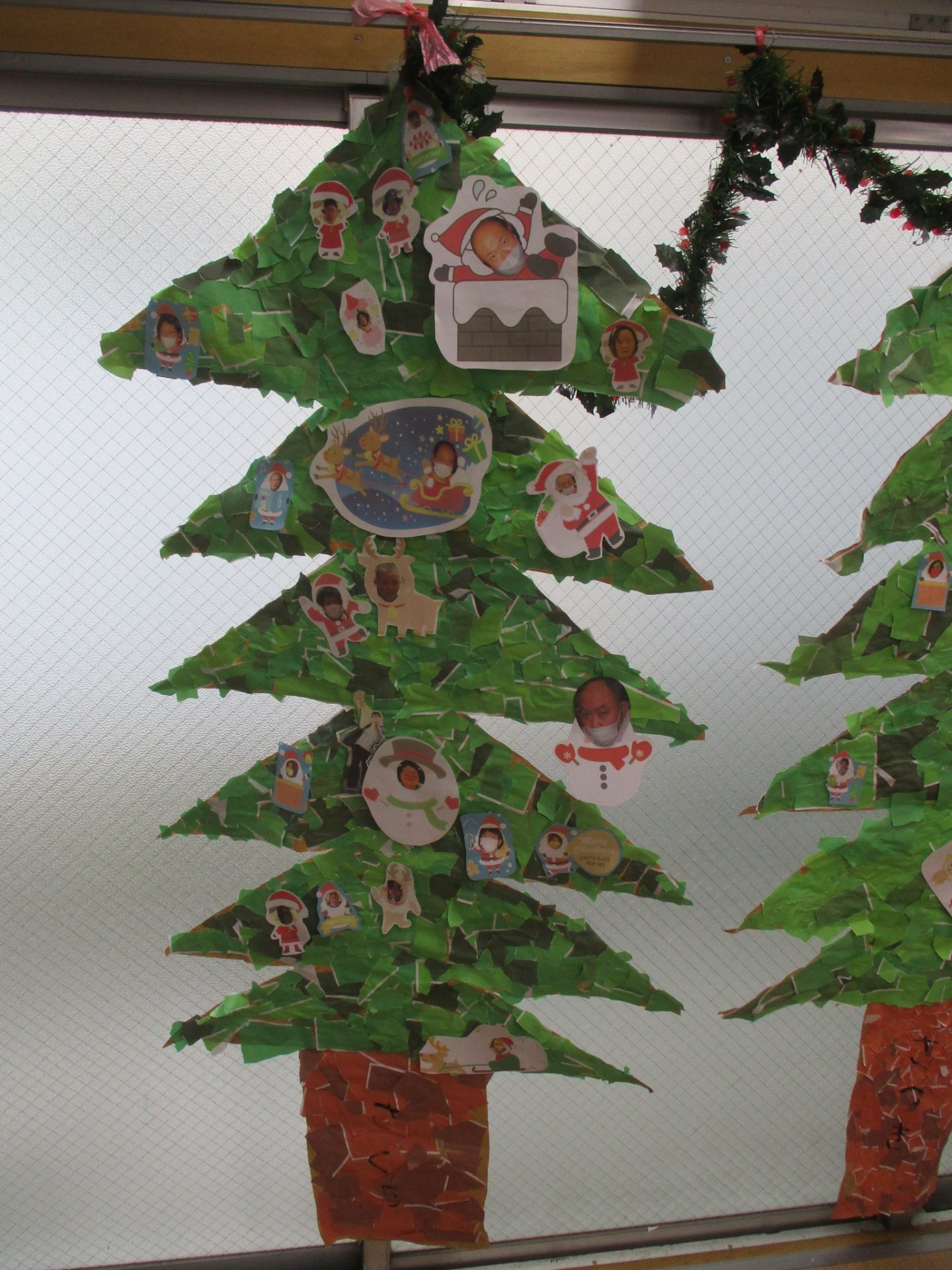 午前中は顔写真を使ったクリスマスツリーの飾り作りに取り組み、午後はそれぞれの飾りを貼り付け、各班らしさのあるツリーが出来上がりました。
