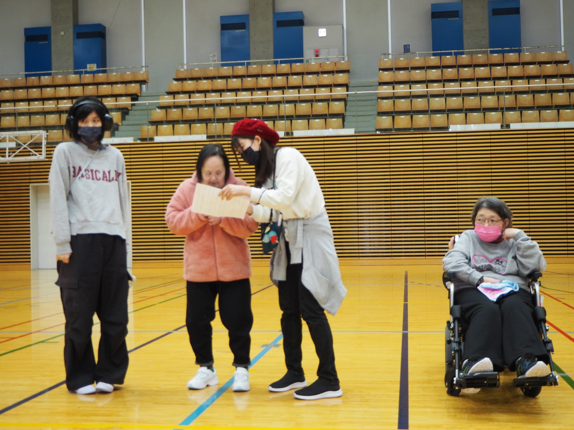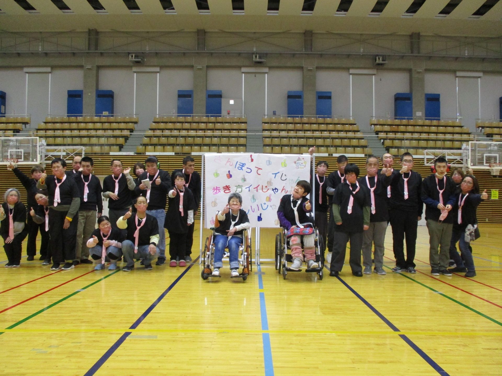堺みなみに通所後、車と徒歩に分かれて原池公園体育館へ向かいましたが、お天気にも恵まれ徒歩組はちょっとしたウォーミングアップになりました。