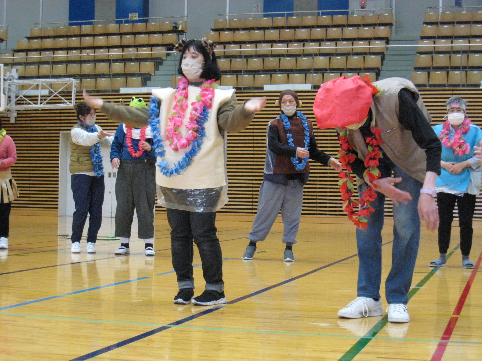 昔話の登場人物に扮して登場し、音楽に合わせてダンスされていました。