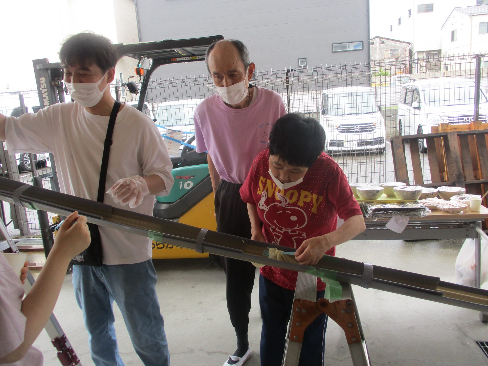 3年目ともなると、皆さん慣れた手つきで流れてくるうどんを綺麗につかんでいました。