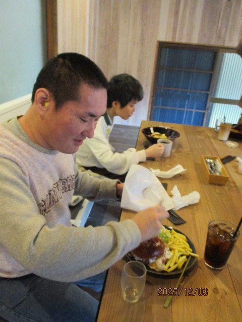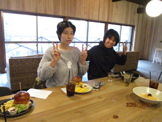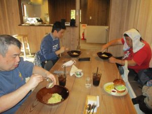食事は、ハンバーガーとパスタから選んで頂きました。