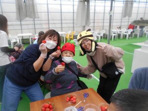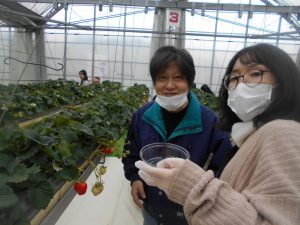 ハウスの中に一歩足を踏み入れると、いちごの甘い香りが一面に広がっており、皆さんの表情も自然と笑顔に。真っ赤に色づいた大きないちごを見つけては、「これ美味しそう!」「こっちにもたくさんあるよ!」と、とても楽しそうに収穫されていました。