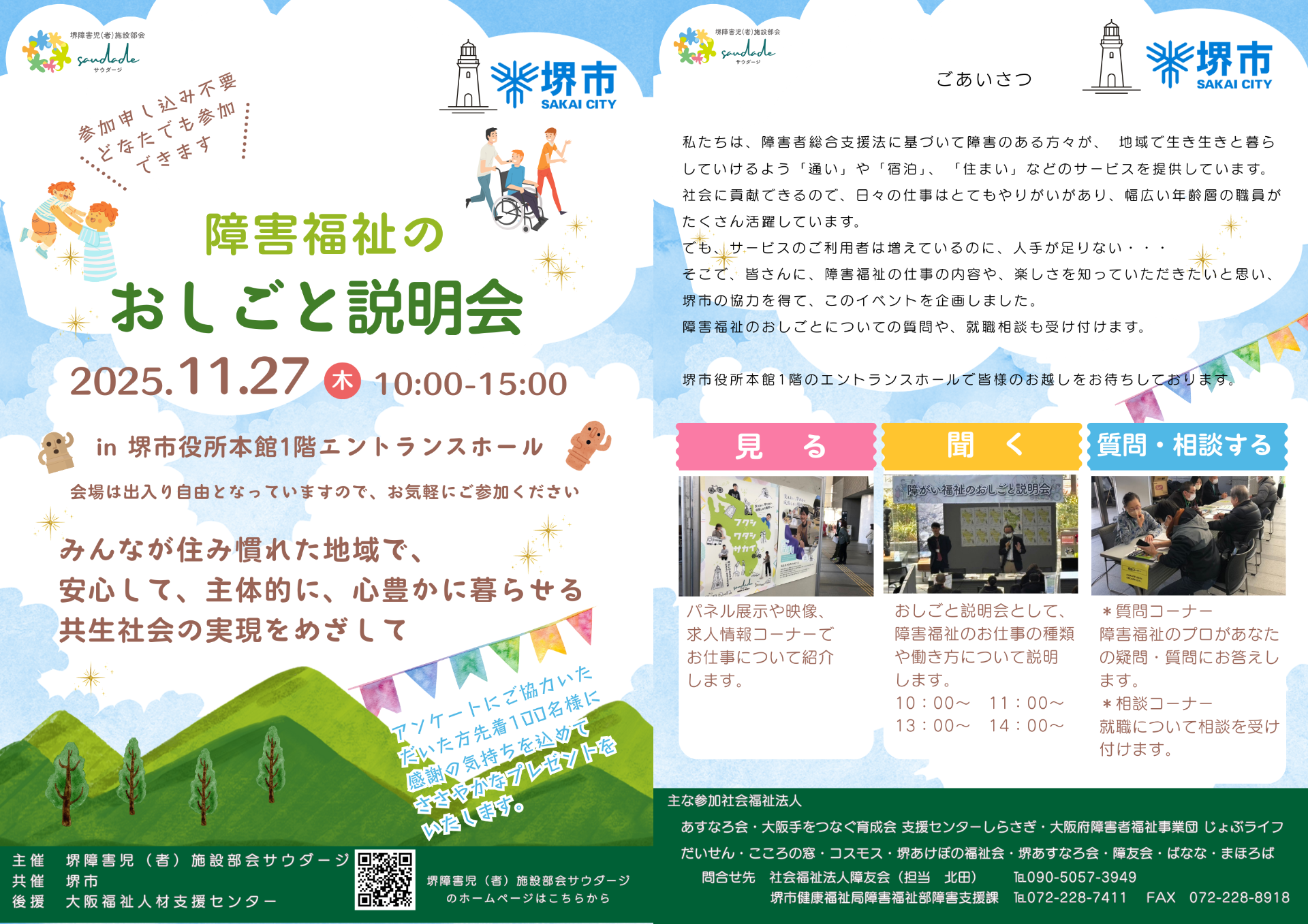 障友会は、堺市内で主に知的に障害のある障害者の生活を支援する通所施設とグループホーム、ショートステイなどを運営する社会福祉法人です。40年近くの歴史ある社会福祉法人なので安定性も抜群!